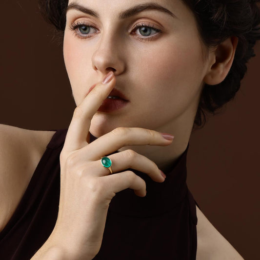 Sarah-Sugarloaf Cabochon Green Tourmaline Gemstone Ring
