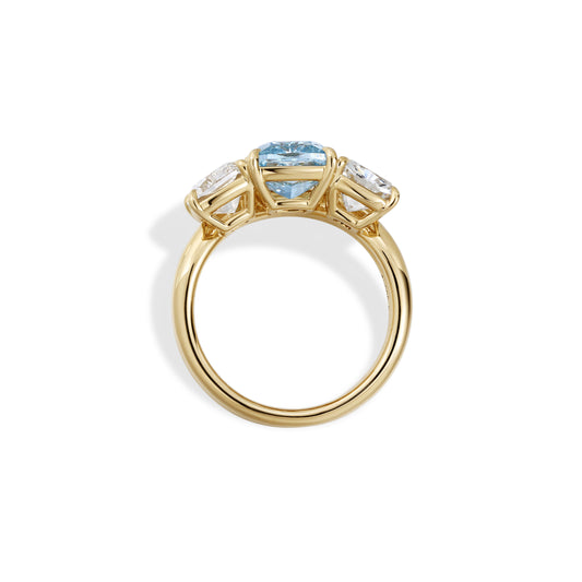 Sage-Blue Cushion Lab Grown Diamond Trilogy Engagement Ring