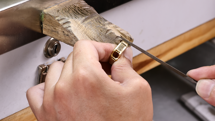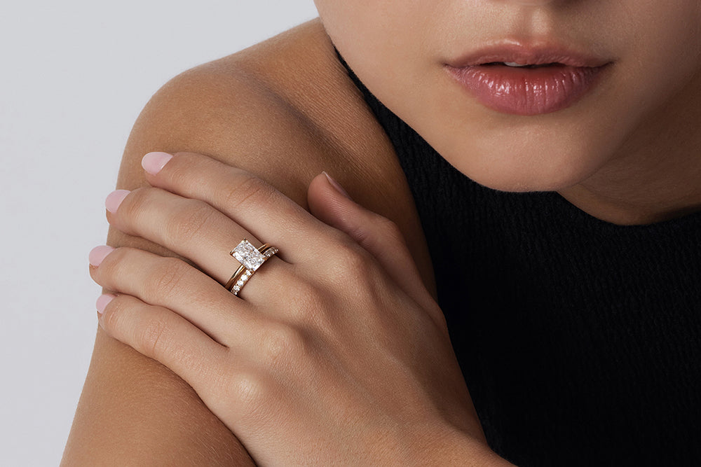 Round cut Diamond Ring Ribbed Cigar Band for Women