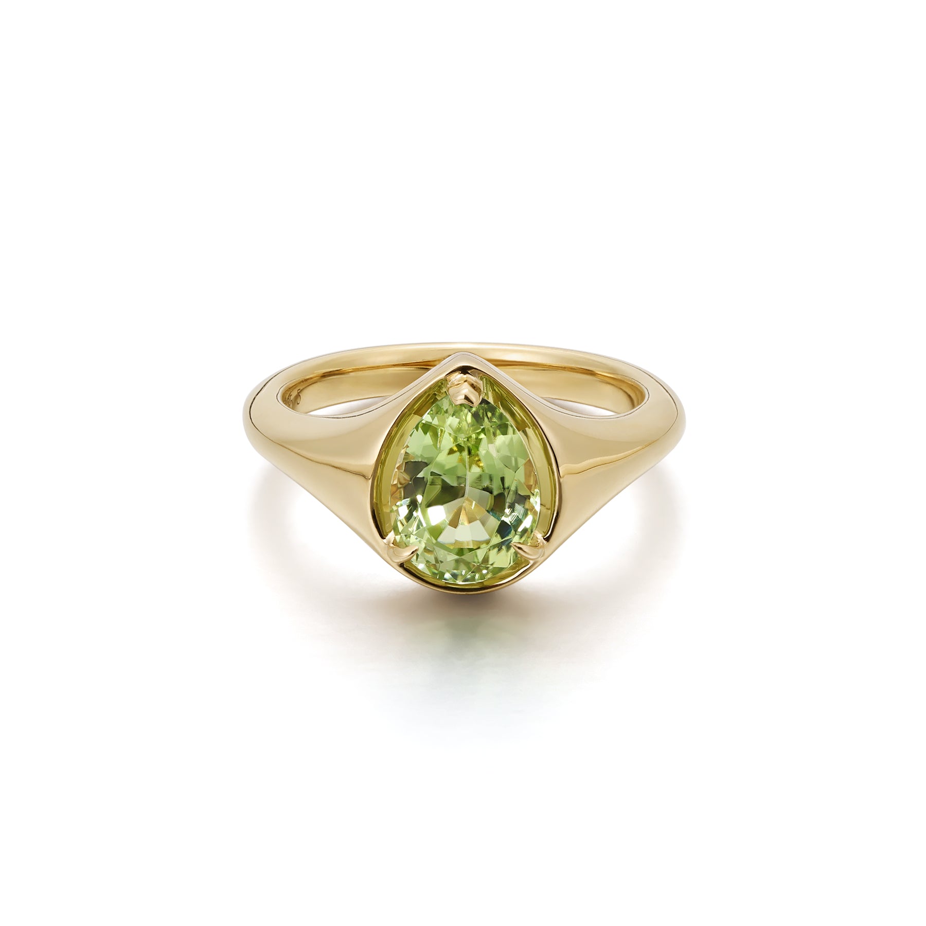 Evie-Pear Cut Lime Green Tourmaline Gemstone Ring
