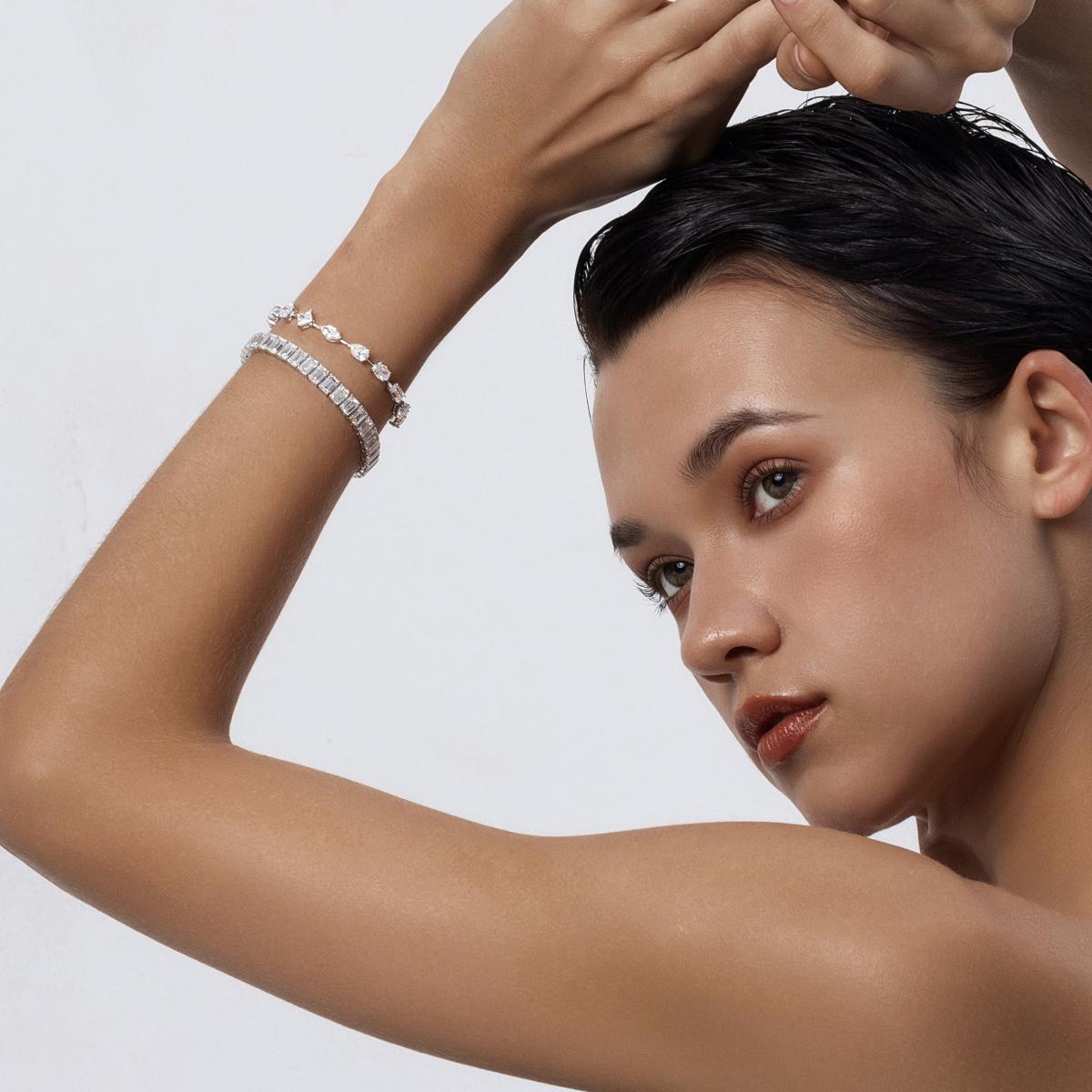 Experience the epitome of refined luxury with the Timeless Elegance Emerald Cut Bracelet. This exquisite piece features a continuous line of lab-grown emerald-cut diamonds, meticulously set in a sleek and polished white gold band. The geometric precision of the emerald cuts creates a mesmerizing play of light, ensuring maximum brilliance and sophistication. Perfect for adding a touch of elegance to any ensemble, this bracelet is a testament to modern design and timeless beauty. Each diamond is carefully selected and crafted to perfection, reflecting Elora's dedication to sustainable luxury. Adorn your wrist with the Timeless Elegance Emerald Cut Bracelet and let its classic charm elevate your style